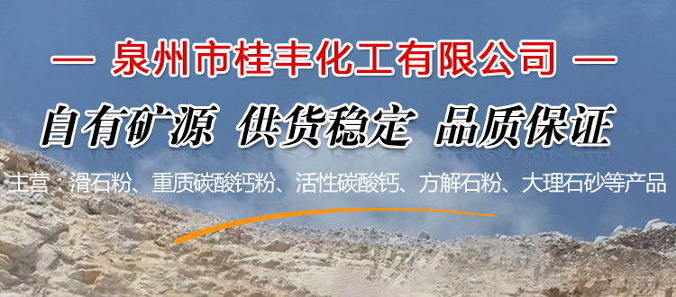 泉州市桂豐化工有限公司是一家有十幾年粉體技術研究和生產(chǎn)經(jīng)驗的企業(yè),公司集粉體技術開發(fā)、礦山開采、粉體生產(chǎn)為一體。主營:滑石粉、重質(zhì)碳酸鈣粉、活性碳酸鈣、方解石粉、大理石砂等產(chǎn)品。專業(yè)生產(chǎn)十大系列10目-8000目石粉產(chǎn)品。得益于優(yōu)良的礦山礦石資源,我司生產(chǎn)的產(chǎn)品具有白度高,純度高,粉碎充分,粒度分布均勻,化學成份穩(wěn)定等特點。產(chǎn)品廣泛運用于醫(yī)藥、化妝品、食品、鞋材、家裝、造紙、橡膠、塑料、涂料、油漆、油墨、陶瓷、電線、電纜等眾多行業(yè)。